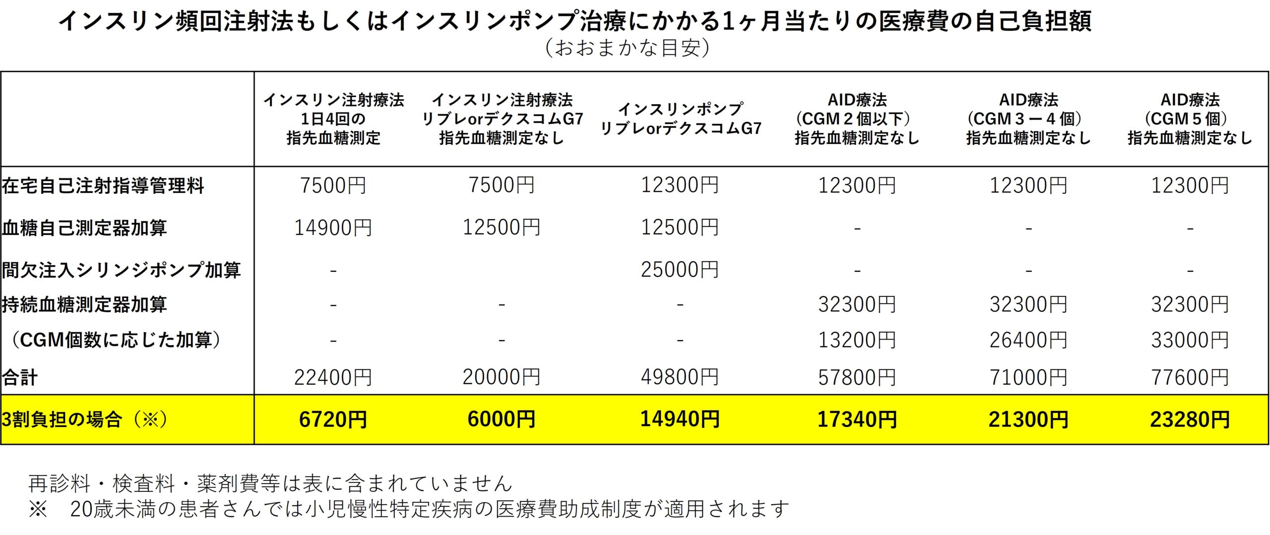 AID療法(ポンプに連動するCGMを使用する場合)により、さらに6000~8000円程度の医療費がかかります。