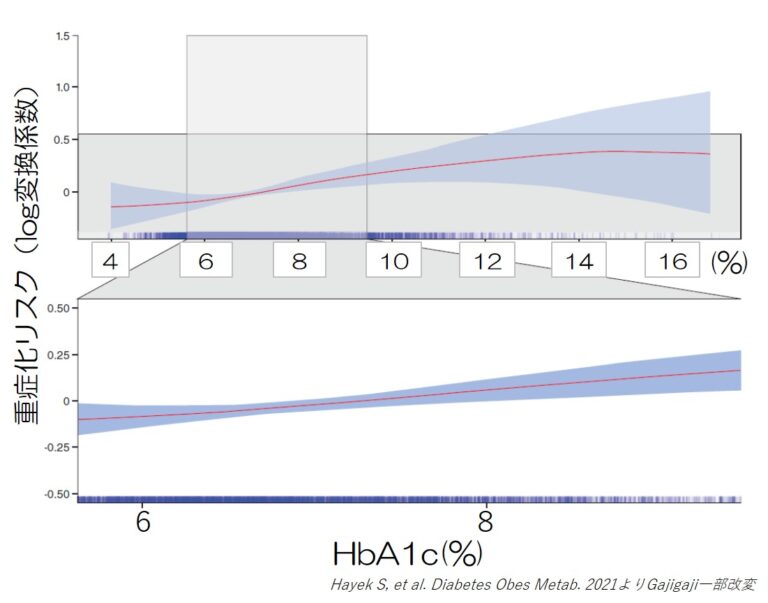 糖尿病を持つ患者さんでは、新型コロナウィルス感染症(COVID-19)の重症化リスクが上がることが報告されていますが、もともとの血糖コントロール状況と重症化との関係について、詳しいことはわかっていません。 血糖コントロールが悪くなると免疫能が低下することは明らかなので、重症化しやすいのは紛れもない事実だと思いますが、HbA1cが何%以上で重症化リスクがどの程度上がるのか具体的に示されたデータは […]